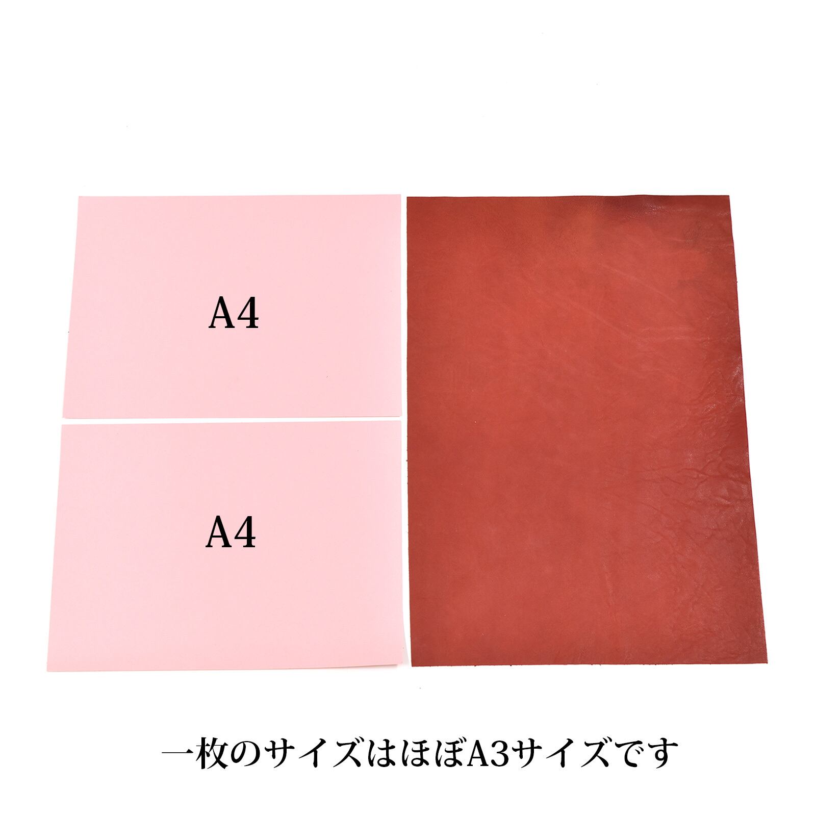 革は裁断後に伸縮する事があり、A3サイズから若干の誤差がございます。