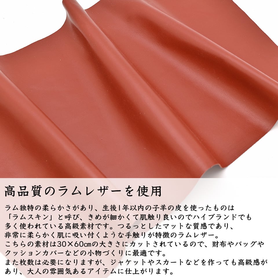 羊革 高品質 革巻物 シート 長尺 レザークラフト 革素材 クロム鞣し テラコッタ 30cm X 60cm