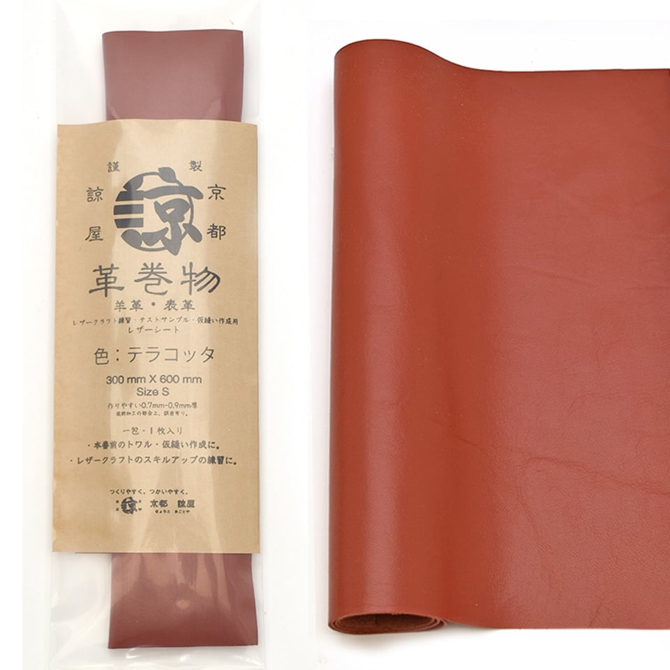 この【羊革巻物・長尺レザーシート】では、革の素材感があり、手縫いや家庭用ミシンでもお使いいただける革の厚み0.7~0.9mmに加工しています。 国内で最終仕上げをしています。