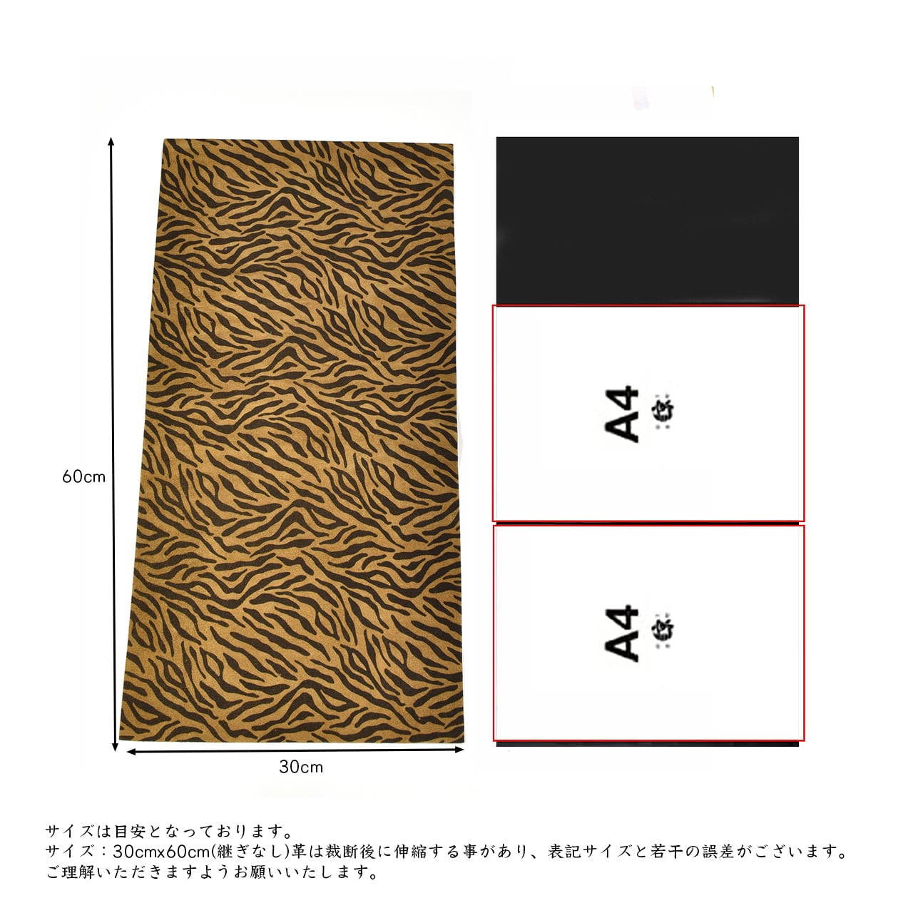 牛床革 革巻物 シート 長尺 レザークラフト 革素材 ゼブラ柄 プリント 30cm X 60cm