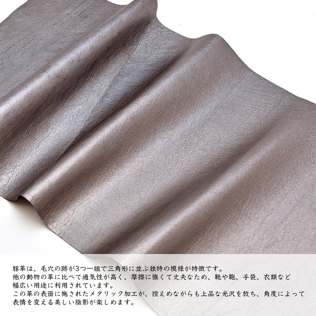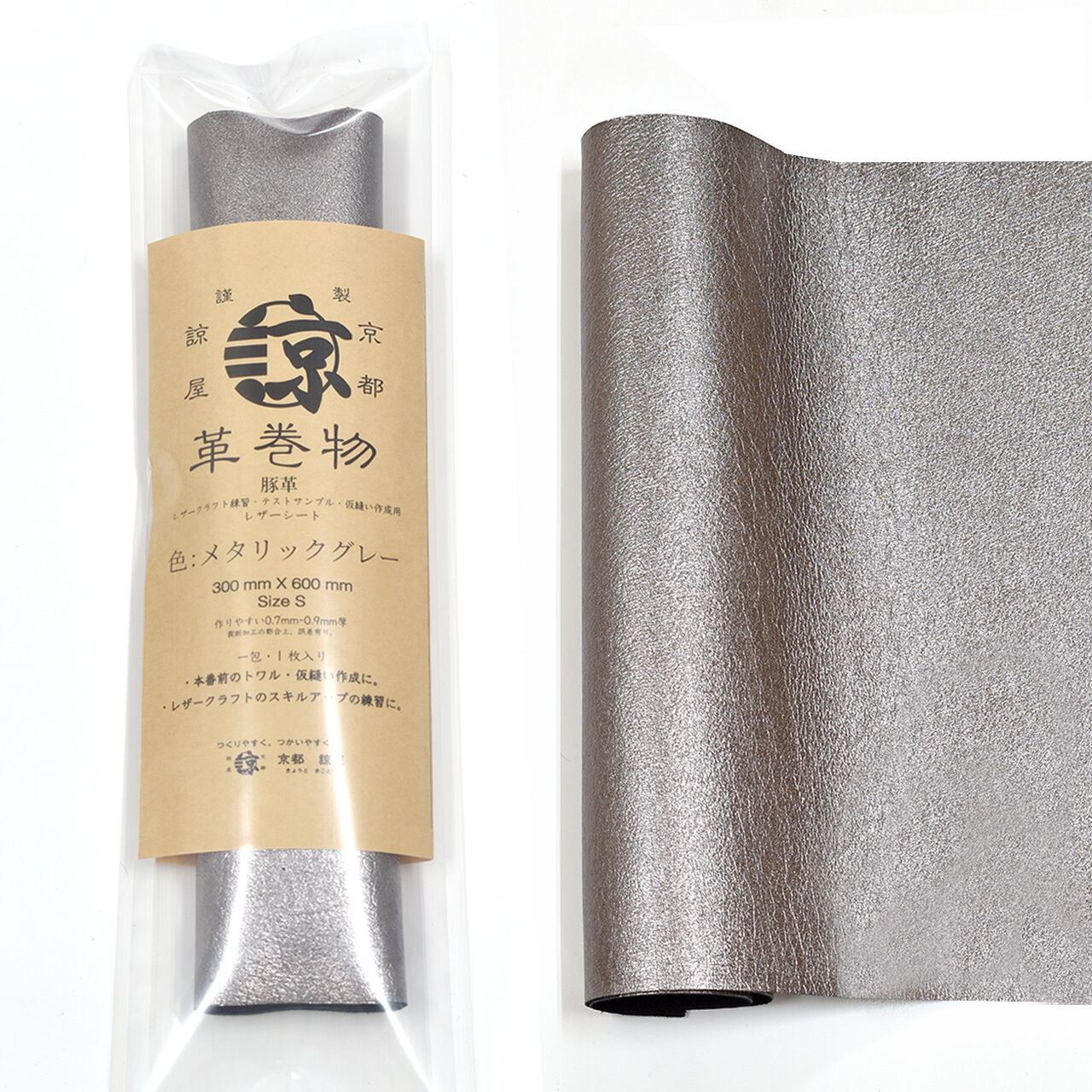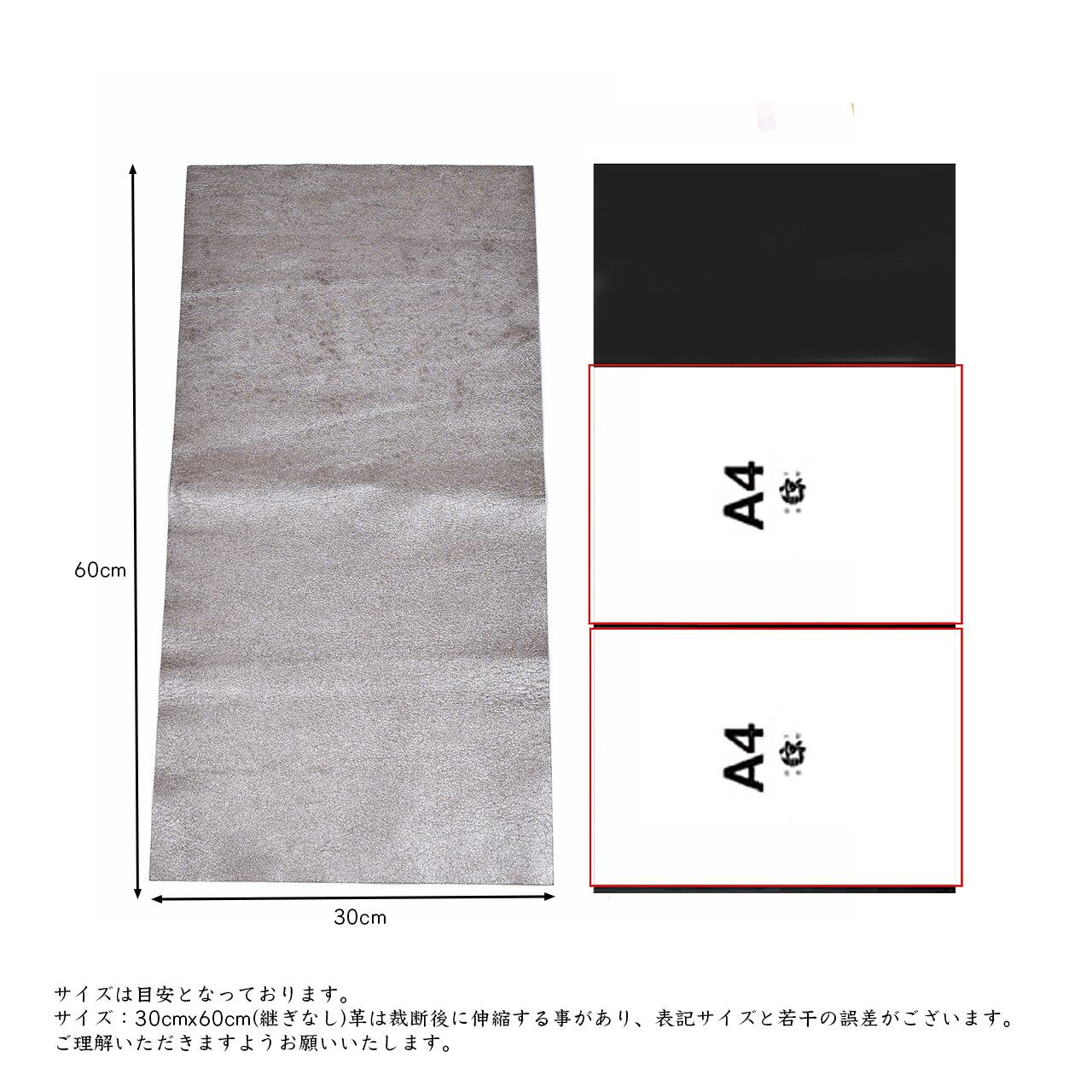 豚革 革巻物 シート 長尺 レザークラフト 革素材 メタリックグレー 30cm X 60cm