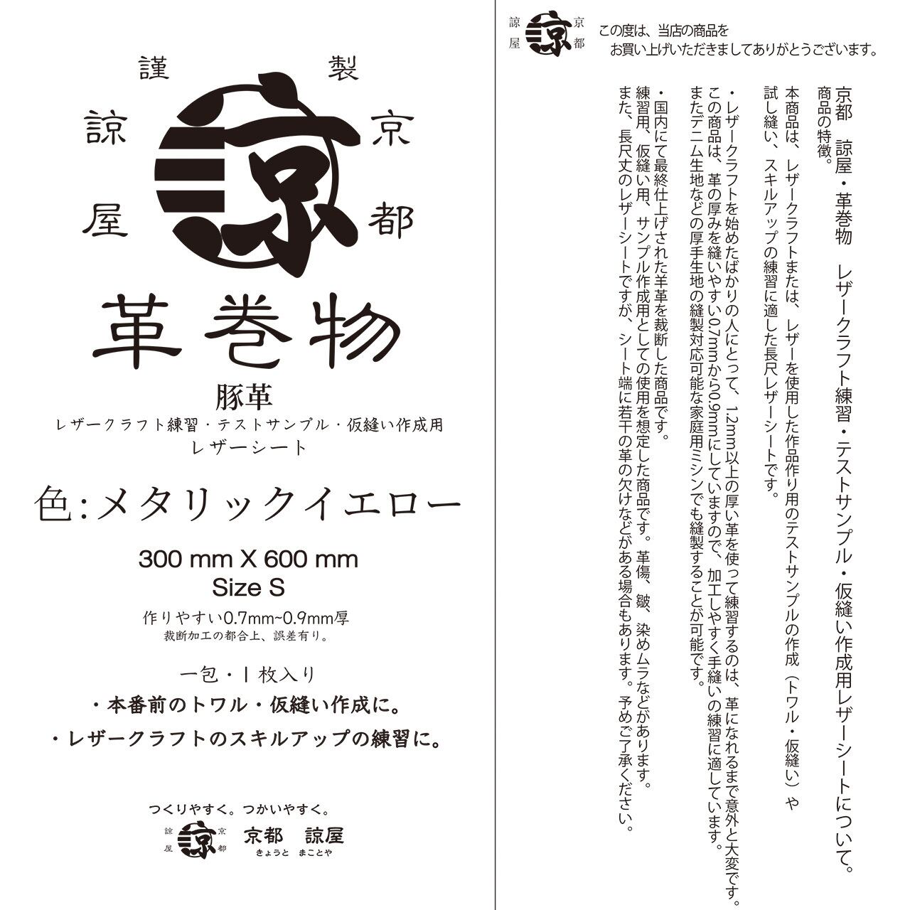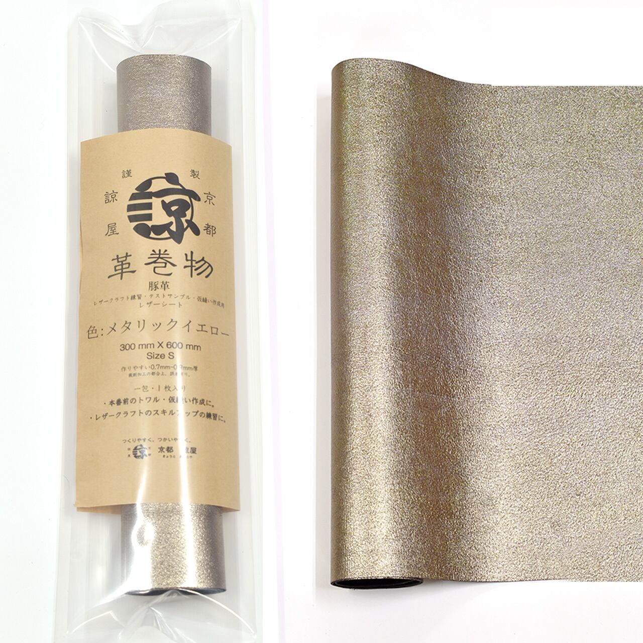 豚革 革巻物 シート 長尺 レザークラフト 革素材 メタリックイエロー 30cm X 60cm