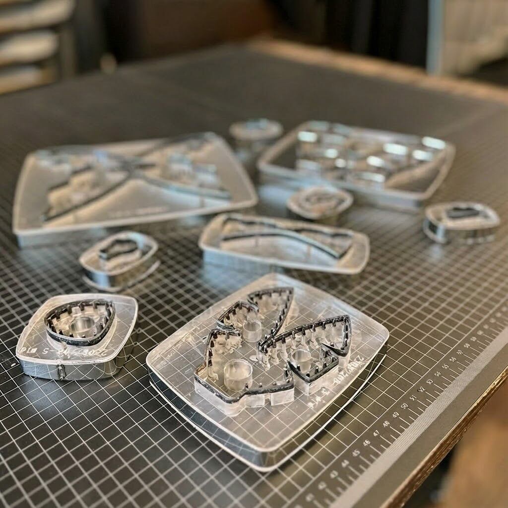 京都諒屋のLeather DIY Kitは、特別な道具不要! 穴が開いたパーツと簡単な説明書で、まるでプラモデルのように誰でも手軽に作れる革製模型キットです。