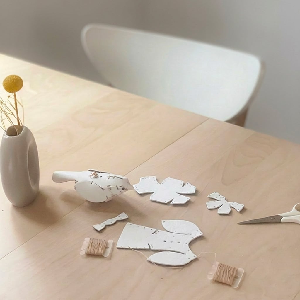 「ことり」は4パーツで構成された「身に付けられる、持ち歩ける」をコンセプトにした革製模型キットです。 背中に開けられた穴に附属のフックパーツを取り付けることでバッグチャーム、キーホルダーやオーナメントなどアイデアに合わせてお使いいただけます。