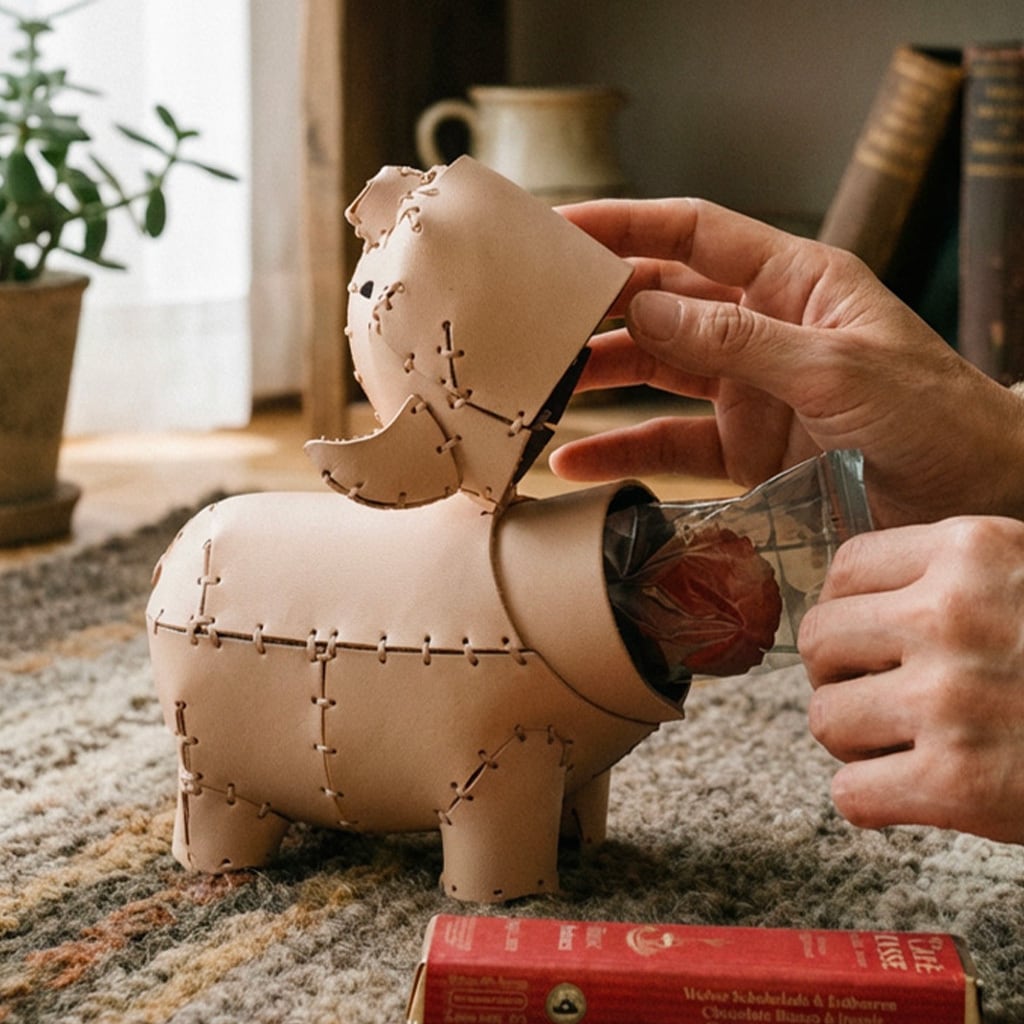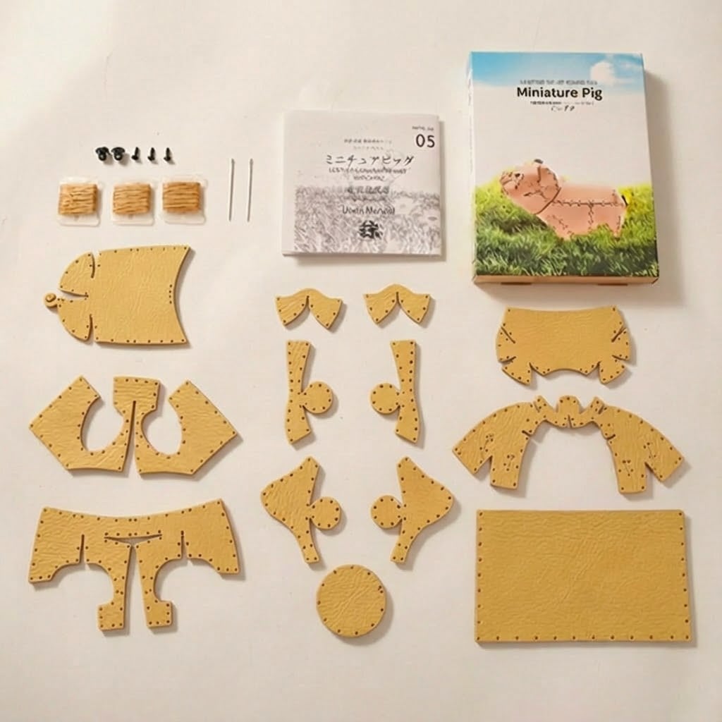 「こぶた」は13パーツで構成された革製模型キットです。
