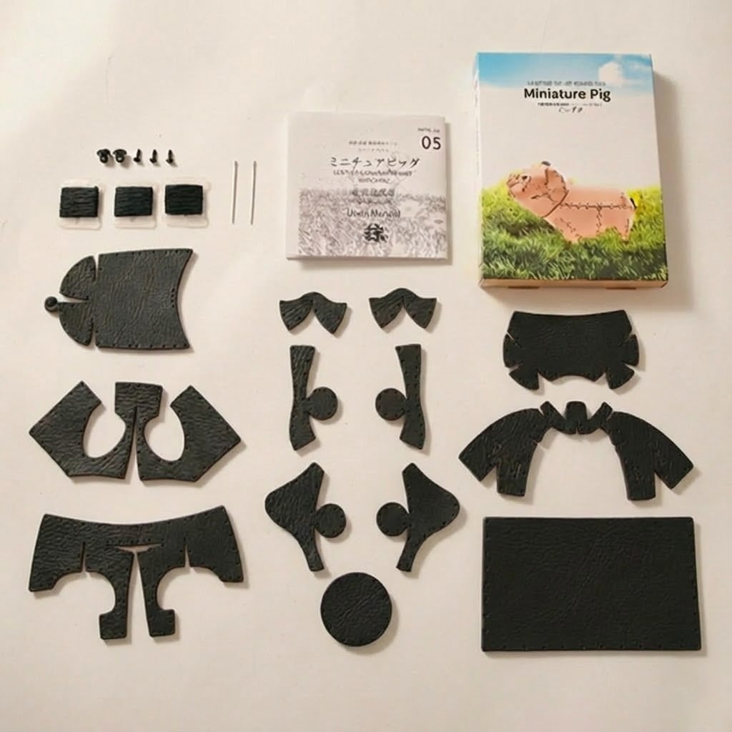 【ブラック】こぶた| 革模型キット 005 レザークラフト DIY